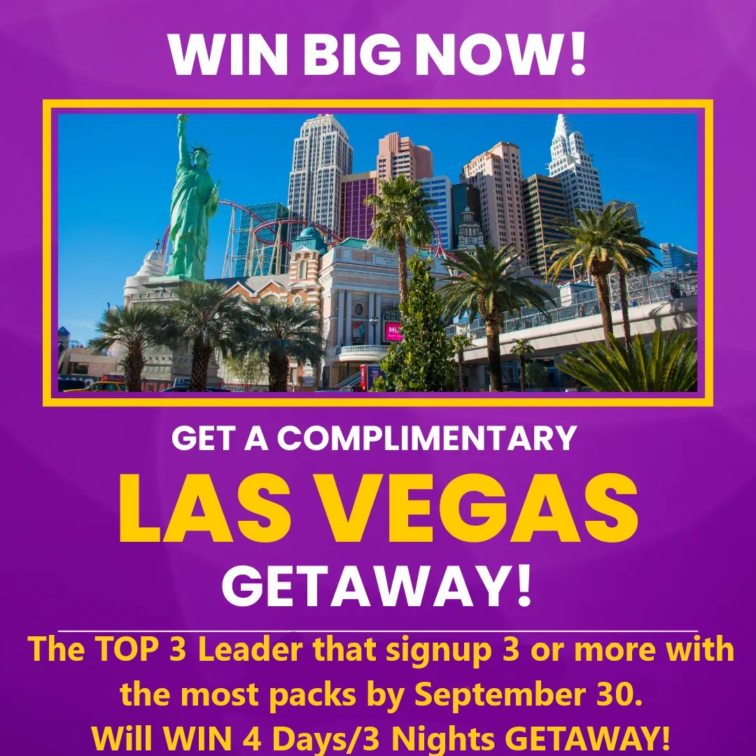 Here’s your chance to shine and be rewarded! The TOP 3 Team Leaders who register at least 3 new members and achieve the highest total Point Value (PV) by September 30, 2025, will each receive a complimentary 4-day, 3-night hotel getaway in Las Vegas!